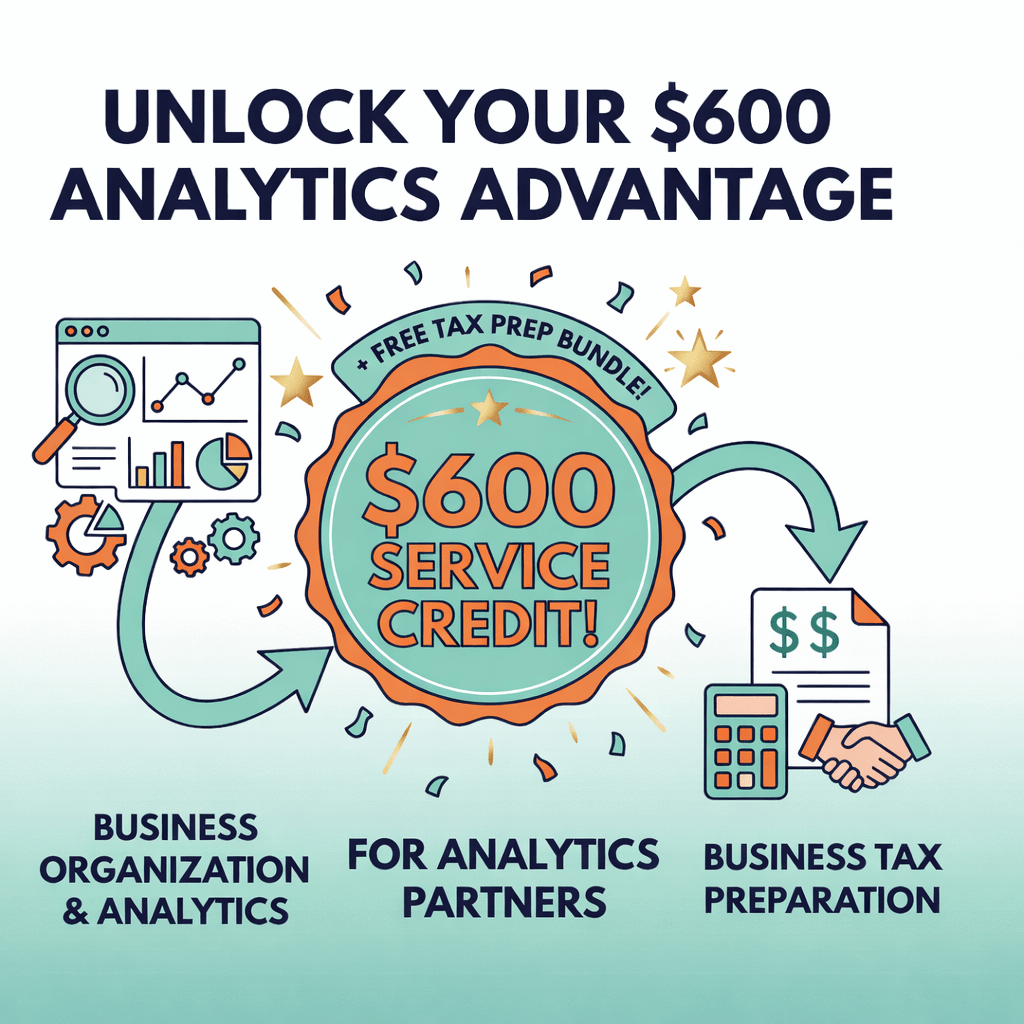 Businesses signed up for our Organization & Analytics program receive a $600 Service Credit toward their annual tax preparation. When you partner with us for your business growth, your tax prep is on us.